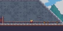 - Стилизованная двухмерная графика в пиксельном ретро-стиле.