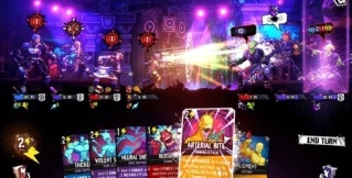 Power Chord – это выполненный в 2,5D гибрид рогалика и ККИ. У него трехмерная мультяшная графика с сел-шейдингом.