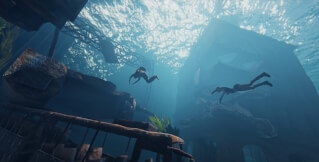 - Возможность исследовать не только оставшиеся базы на поверхности, но ещё и погружаться под воду для исследования затонувших городов. Занятия опасные, однако позволяют находить больше полезных ресурсов;